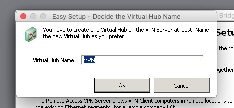 in the next windows you can leave VPN as a name for the Virtual Hub – read the documentation to understand what hubs are.