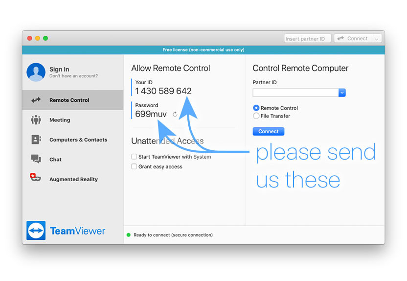 In order to provide you remote support please go to www.TeamViewer.com, download the installer and follow the instructions below.